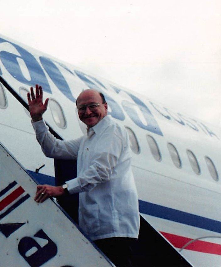 Fotografía de Germán Serrano Pinto abordando avión de Lacsa
